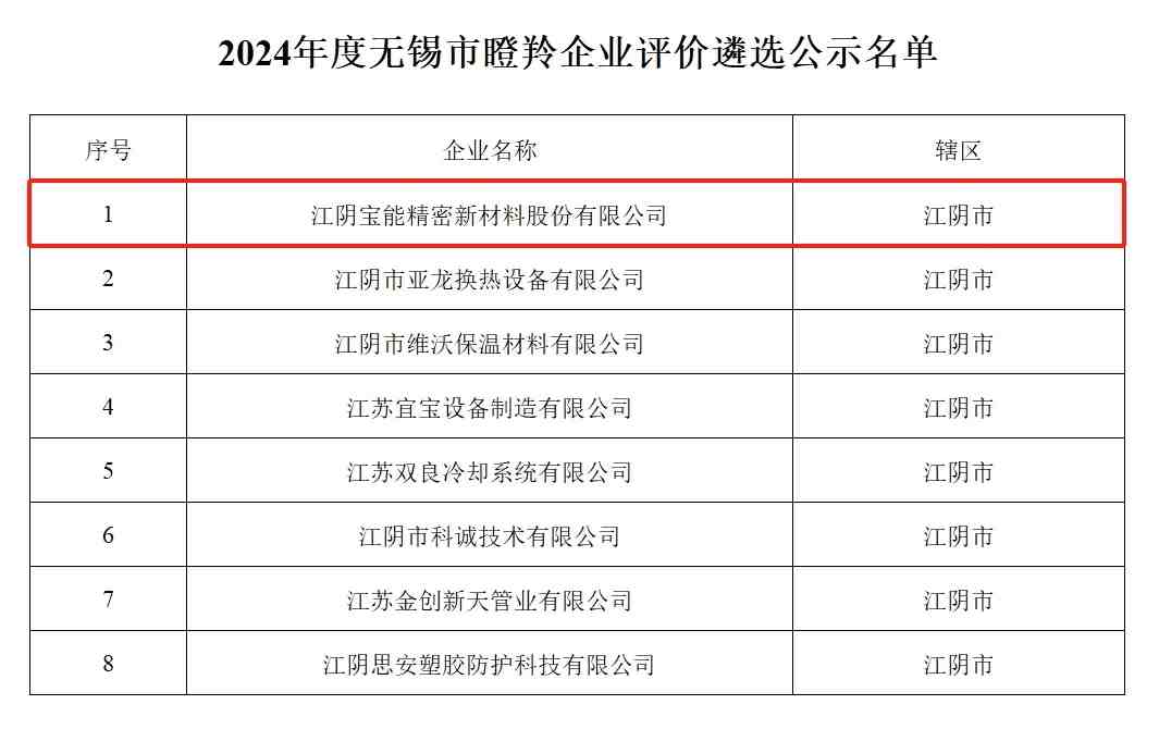 公司擁有多項企業(yè)榮譽(yù)資質(zhì):“江蘇省民營科技企業(yè)”、“江陰市切割硅片用超高強(qiáng)微絲工程技術(shù)研究中心”、“江蘇省科技型中小企業(yè)”、“無錫市創(chuàng)新型中小企業(yè)”。在全體寶能人的努力探索、奮勇爭先下,在各項榮譽(yù)資質(zhì)的加持下,公司已發(fā)展成為金剛石線繩切割行業(yè)骨架材料全方案核心供應(yīng)商。